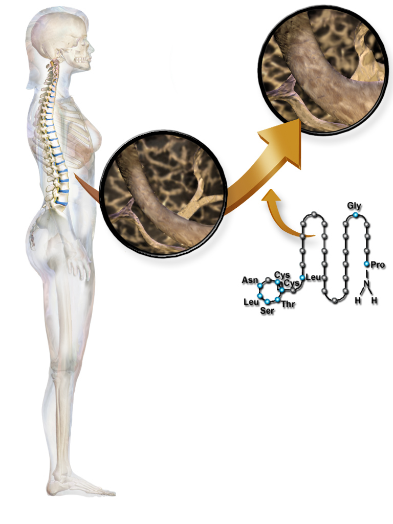 Calcitonin is a polypeptide hormone of 32 amino acids, with a molecular weight of 3454.93 daltons. Its structure comprises a single alpha helix.