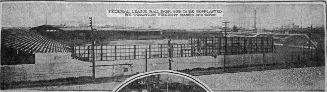 In 1914, the newly formed Federal League baseball team, the Indianapolis Hoosiers, moved into their new home, called Federal League Park. The Hoosiers won the Federal League pennant in 1913 and 1914. This “outlaw” league competed against the National and American league teams until it folded in 1915. The ballpark closed in 1916 to make room for freight yards.