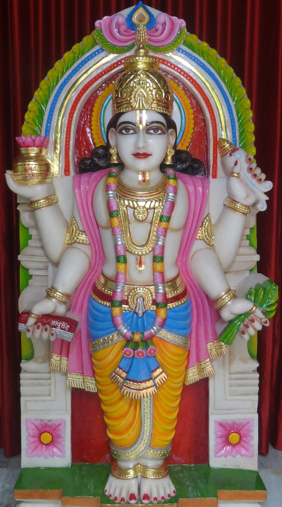 Dhanvantari (Dhanvantari, Dhanvamtari, ‘moving in a curve’) is the physician of the devas in Hinduism. He is regarded to be an avatar of Vishnu. He is mentioned in the Puranas as the god of Ayurveda.