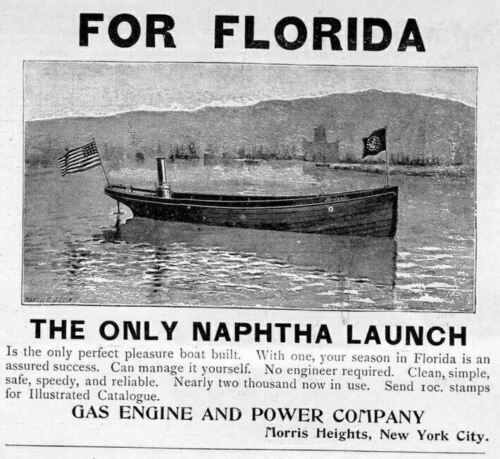 In the 1921 novel of the popular Tom Swift series, Tom Swift Among the Fire Fighters, the hero rescues passengers with the aid of a naphtha launch, describing it as “old-fashioned”. The author also passes comment as to them being “a trifle treacherous” to light.