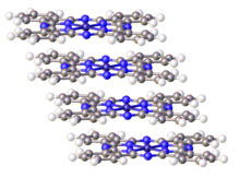 Portion of crystal structure of CuPc, highlighting its slipped-stack packing motif. P.Erk, H.Hengelsberg, M.F.Haddow, R.van Gelder (2004). “The innovative momentum of crystal engineering”. CrystEngComm. 6 (78): 474. doi:10.1039/b409282a.