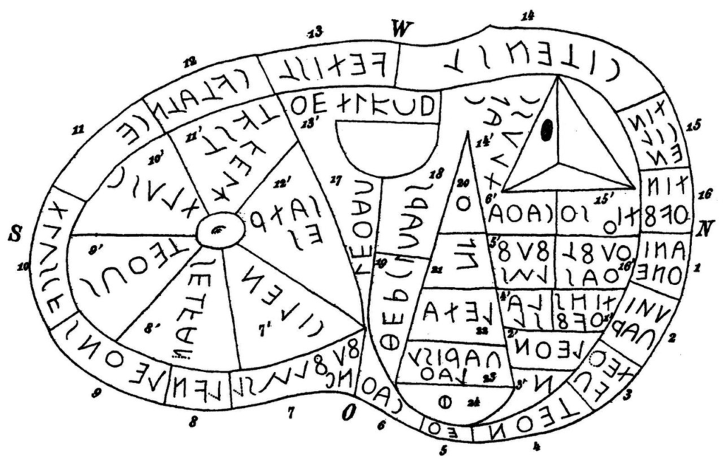 Haruspicy in Ancient Italy originated with the Etruscans. Textual evidence for Etruscan divination comes from an Etruscan inscription: the priest Laris Pulenas’ (250–200 BCE) epitaph mentions a book he wrote on haruspicy. A collection of sacred texts called the Etrusca disciplina, written in Etruscan, were essentially guides on different forms of divination, including haruspicy and augury. In addition, a number of archeological artifacts depict Etruscan haruspicy. These include a bronze mirror with an image of a haruspex dressed in Etruscan priest’s clothing, holding a liver while a crowd gathers near him. Another significant artifact relating to haruspicy in Ancient Italy is the Piacenza Liver. This bronze model of a sheep’s liver was found by chance by a farmer in 1877. Names of gods are etched into the surface and organized into different sections. Artifacts depicting haruspicy exist from the ancient Roman world as well, such as stone relief carvings located in Trajan’s Forum.