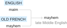 - Harper, Douglas. “Etymology of mayhem.” Online Etymology Dictionary, https://www.etymonline.com/word/mayhem. Accessed 12 February, 2023.