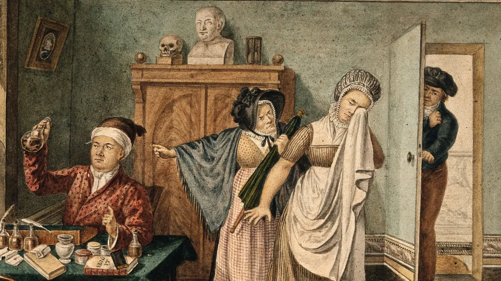 Hm…unless something like that totally explains so many cretins posing with the matula/urinal/bottle of piss…some kind of medical logo/portrait prop that preceded the pipe and the creepy crawly things?