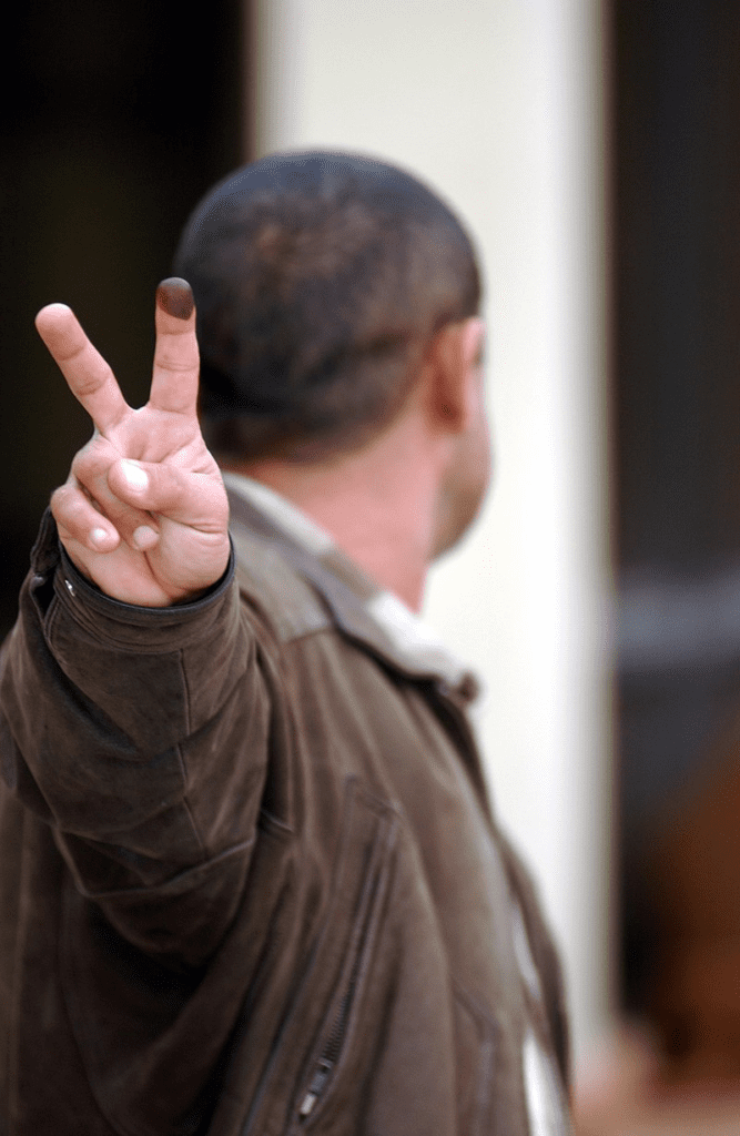 - “An Algerian man, with ink applied on his forefinger, prepares to vote a polling station in the Chanot Park on April 12, 2014 in Marseille, southern France”.