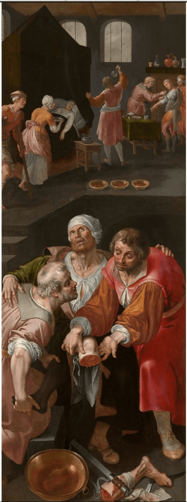 - Frederick V. Zglinicki : Uroscopy in the fine arts. An art- and medical-historical study of urinalysis. Ernst Giebeler, Darmstadt 1982, pp. 135–146 ( In an emergency only heaven can help. The phenomenon of Cosmas and Damian. ).