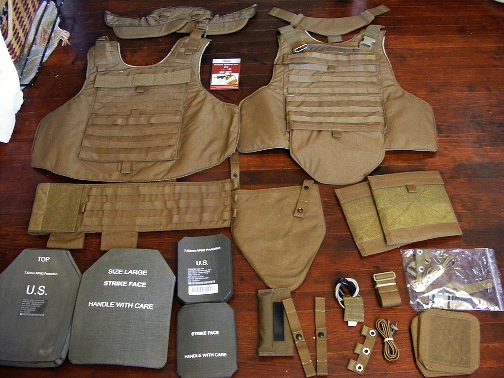 Modular Tactical Vest broken into its parts. The gorget is in the upper right corner.