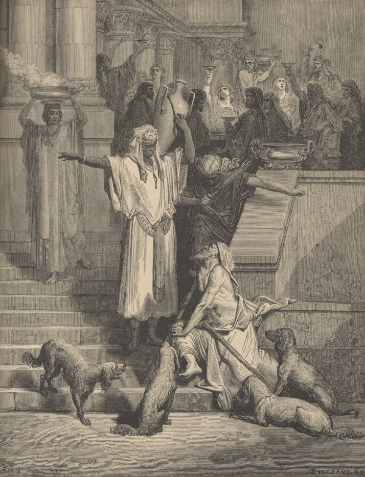 The rich man and Lazarus (also called the parable of Dives and Lazarus) is a parable of Jesus from the 16th chapter of the Gospel of Luke. Speaking to his disciples and some Pharisees, Jesus tells of an unnamed rich man and a beggar named Lazarus. When both die, the rich man goes to Hell and implores Abraham to send Lazarus from his side in Heaven to warn the rich man’s family from sharing his fate. Abraham replies, “If they do not listen to Moses and the Prophets, they will not be convinced even if someone rises from the dead.”