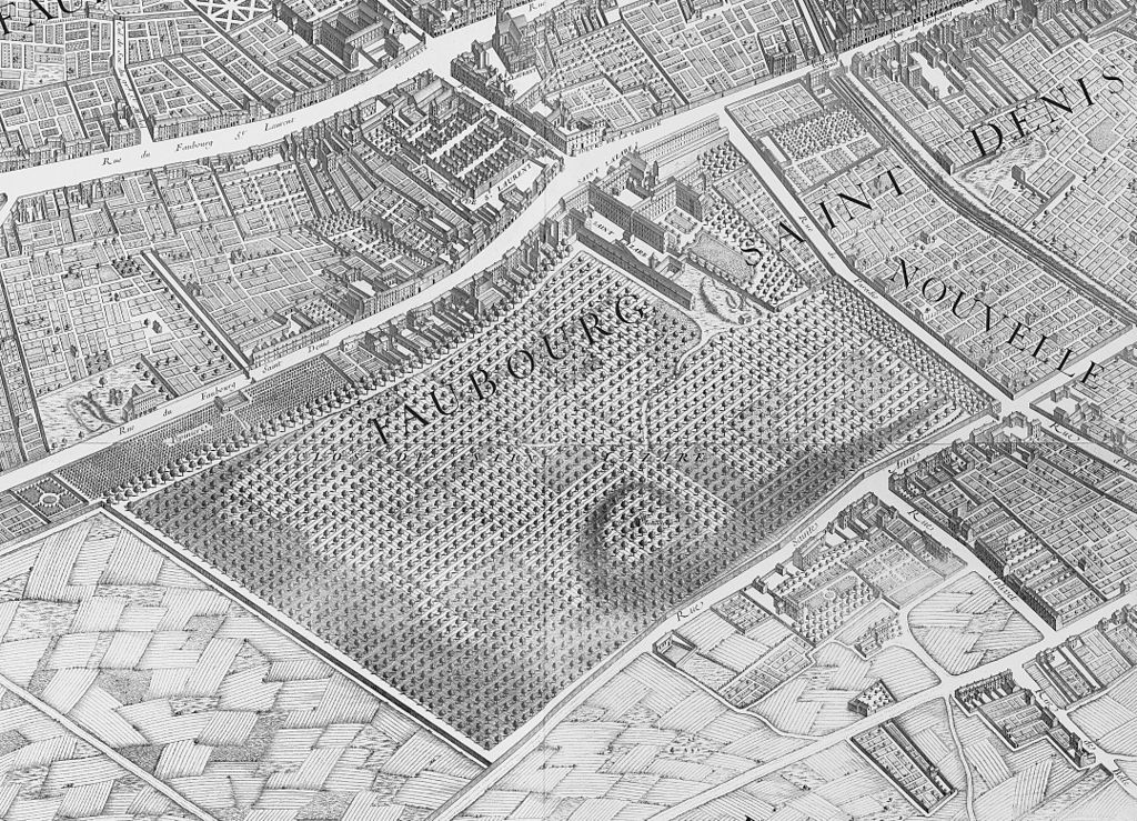 The prison was situated in the enclos Saint-Lazare, the largest enclosure in Paris until the end of the 18th century, between the Rue de Paradis to its south, the Rue du Faubourg-Saint-Denis to its east, the Boulevard de la Chapelle to its north and the Rue Sainte-Anne to its west (today the Rue du Faubourg Poissonnière). Its site is now marked by the Church of Saint-Vincent-de-Paul.[citation needed]
