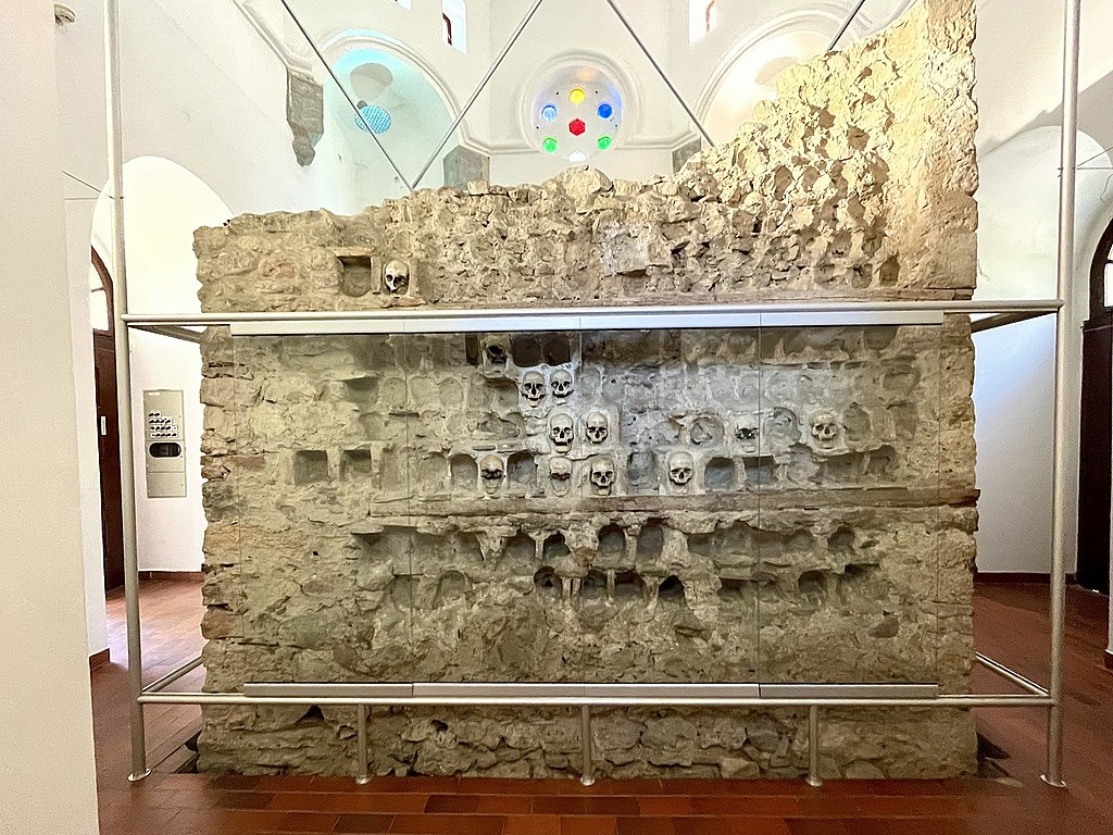 In 1861, Midhat Pasha, the last Ottoman governor of Niš, ordered that Skull Tower be dismantled. Following the Ottomans’ withdrawal from Niš in 1878, the structure was partially restored, roofed over with a baldachin and some of the skulls that had been removed from it were returned. Construction of a chapel surrounding the structure commenced in 1892 and was completed in 1894. The chapel was renovated in 1937. A bust of Sinđelić was added the following year. In 1948, Skull Tower and the chapel enclosing it were declared Cultural Monuments of Exceptional Importance and came under the protection of the Socialist Republic of Serbia. Further renovation of the chapel occurred again in 1989.