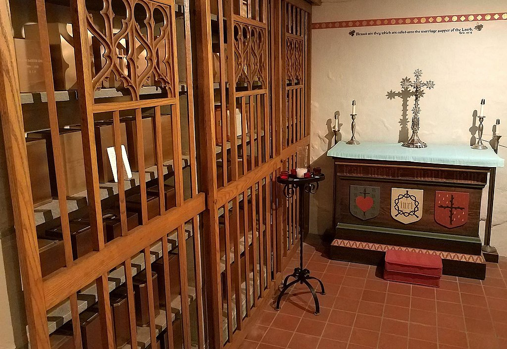 Roman columbaria were often built partly or completely underground. The Columbarium of Pomponius Hylas is an ancient Roman example, rich in frescoes, decorations, and precious mosaics.