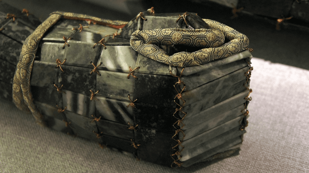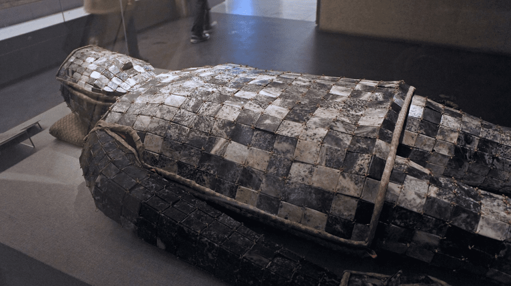 Jade burial suit of Liu Sui, Prince of Liang, of Western Han, made with 2,008 pieces of jade  dated from 40 BC, excavated from the Xishan Tomb 1 (僖山一号墓) at YongchengHenan.