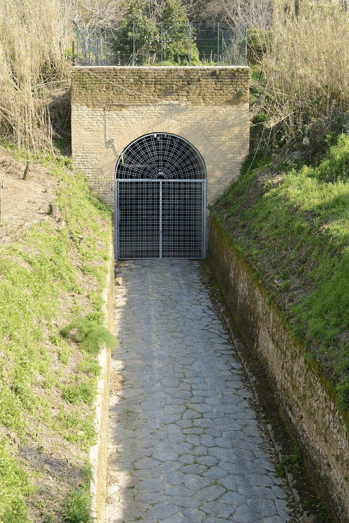 The Crypta Romana tunnel was also built nearby from Cumae to its port in the same period, as well as other tunnels in the vicinity (e.g. the Crypta Neapolitana).