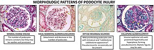 A loss of the foot processes of the podocytes (i.e., podocyte effacement) is a hallmark of minimal change disease, which has therefore sometimes been called foot process disease.