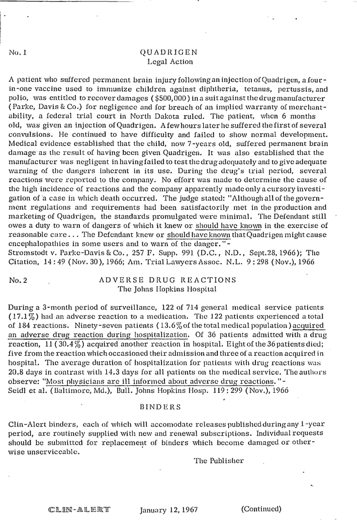 2. January 12, 1967. Clin-Alert. 1967;5(1):1-4. doi:10.1177/006947706700500101