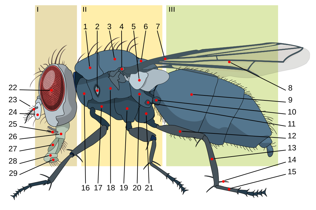 Anatomy of a housefly with numbers